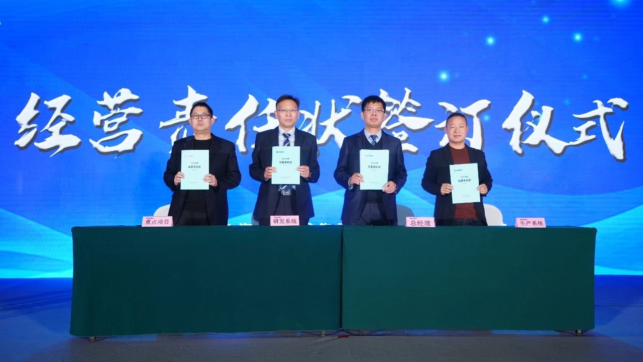現(xiàn)場(chǎng),總經(jīng)理與董事長(zhǎng),國(guó)內(nèi)外市場(chǎng)負(fù)責(zé)人、各重點(diǎn)項(xiàng)目負(fù)責(zé)人與總經(jīng)理,分別簽署2024年責(zé)任狀。副總經(jīng)理王世軍代表管理團(tuán)隊(duì)做出表態(tài),堅(jiān)決高質(zhì)高量完成生產(chǎn)經(jīng)營(yíng)全年任務(wù)指標(biāo)。